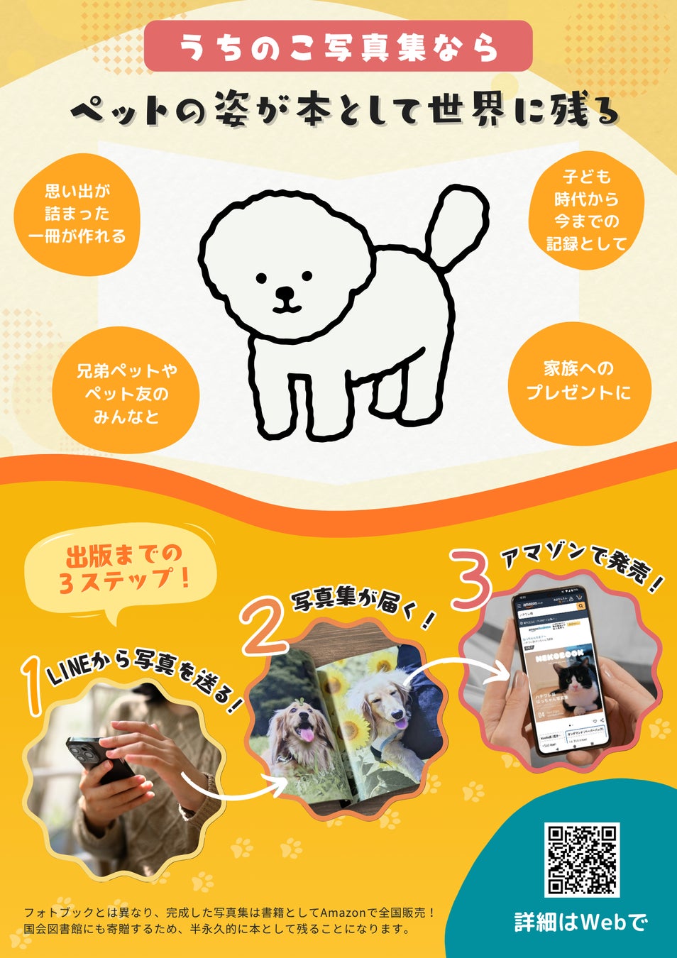 「うちの子写真集」は、愛するペットとの思い出を形にし、世界に一つだけの写真集を制作・販売するサービスです。これまでは制作・出版代行が主な役割でしたが、お客様からの「うちの子」への深い愛情と、写真集が持つ価値へのご期待にお応えするため、この度のサービス改定を決定いたしました。
